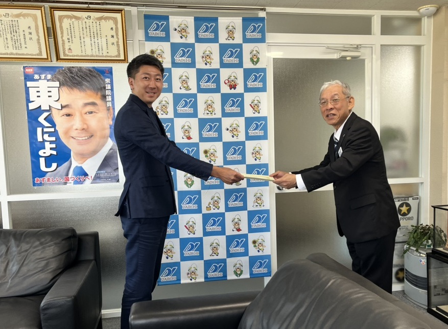 JR北海道の島村常務取締役鉄道事業本部長がこのたび来社され、8月にJR宗谷線の下沼駅~豊富駅間で2度発生した豪雨災害の復旧対応に対し、感謝状が贈呈されました。