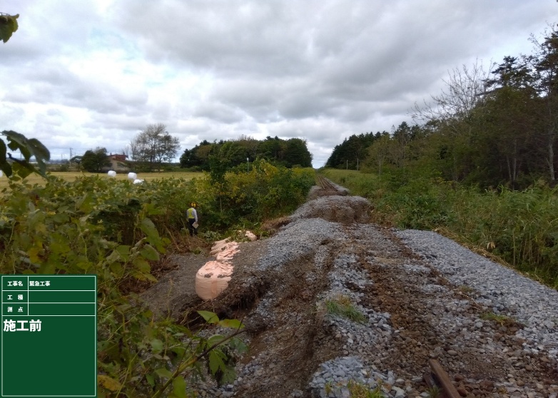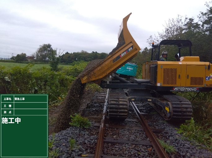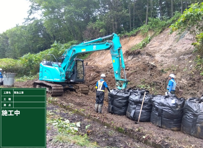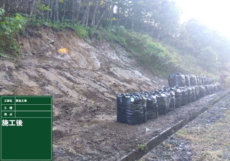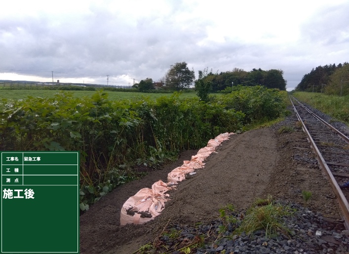 • 線路沿いの法面崩壊に対する大型土嚢での応急復旧